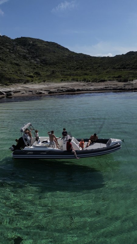 Fanale Marine Altagna 800, homologué 14 personnes, full options, allie espace, confort et performances. À bord : bain de soleil, table, taud de soleil, plateforme et échelle de bain, douchette, GPS, commandes électriques, guindeau électrique et feux de navigation. Motorisé par un Suzuki 300 CV DuoProp, il offre puissance et rendement remarquable. Réservoir 350 L, consommation moyenne 25 L/h à 25 nœuds pour naviguer vite, loin et sereinement. Expérience premium garantie.