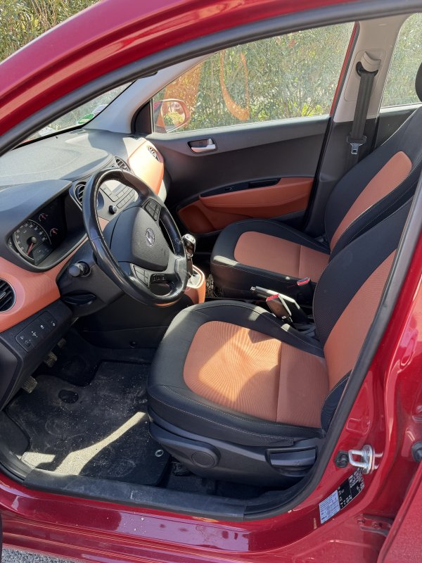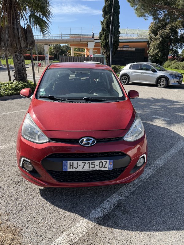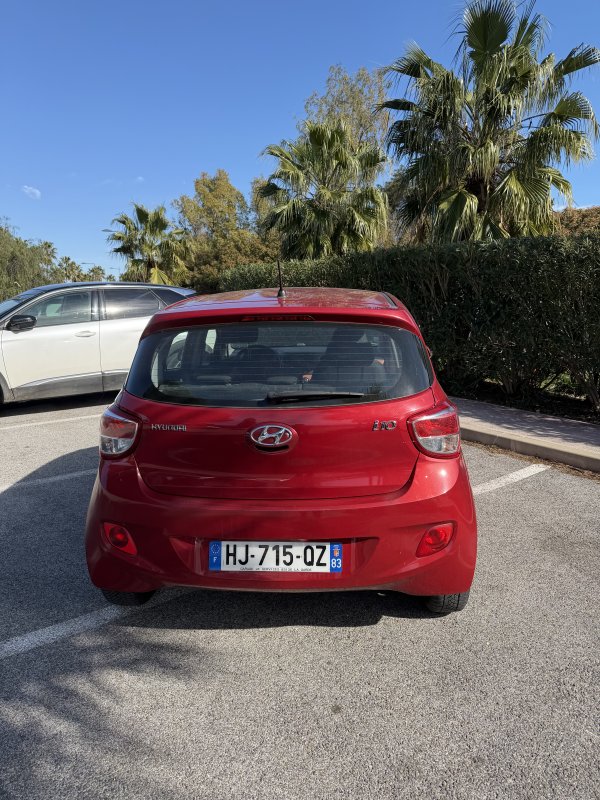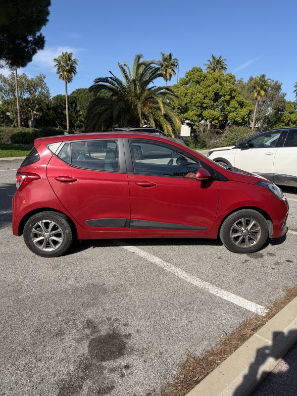 HYUNDAI i10 Rouge – Citadine disponible à la location 🔹 Confort : Véhicule compact avec un intérieur confortable et une conduite facile en ville 🔹 Économie : Très faible consommation de carburant 🔹 Utilisation idéale : Trajets urbains, déplacements quotidiens et stationnement facile