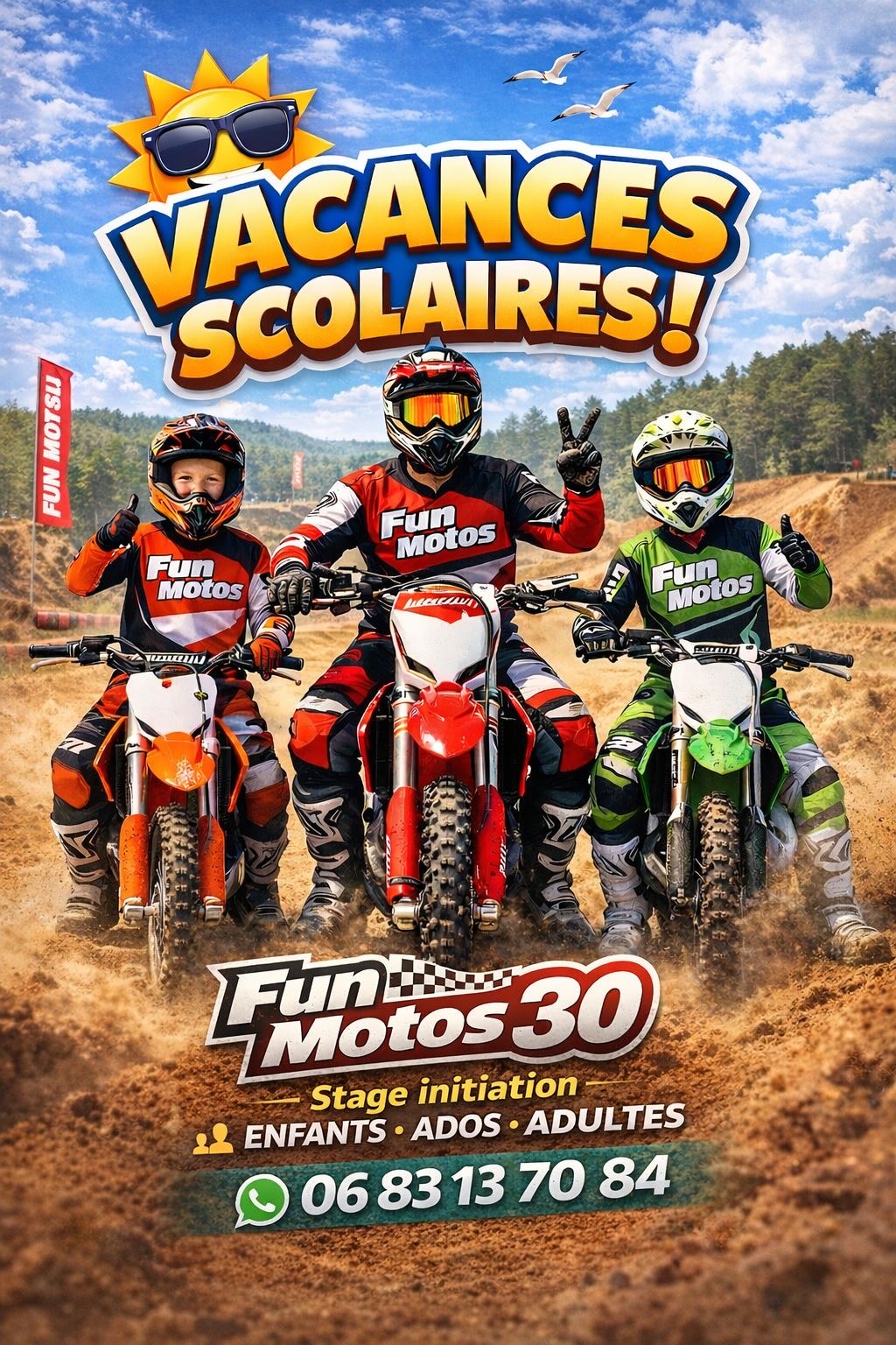 Des séances encadrées par niveau tous les matins pour les débutants et petites elec pour découvrir l'activité et les après midis pour se perfectionner au sport motocyclisme façon motocross !!!