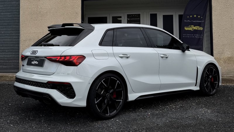 Découvrez la RS3 8Y, une compacte sportive d’exception qui marie performance brute, design racé et exclusivité. Idéale pour les passionnés de conduite, cette RS3 blanche associe puissance légendaire du 5 cylindres, châssis affûté et sonorité unique. Les finitions RS soulignent son caractère radical, tout en offrant une présence visuelle.